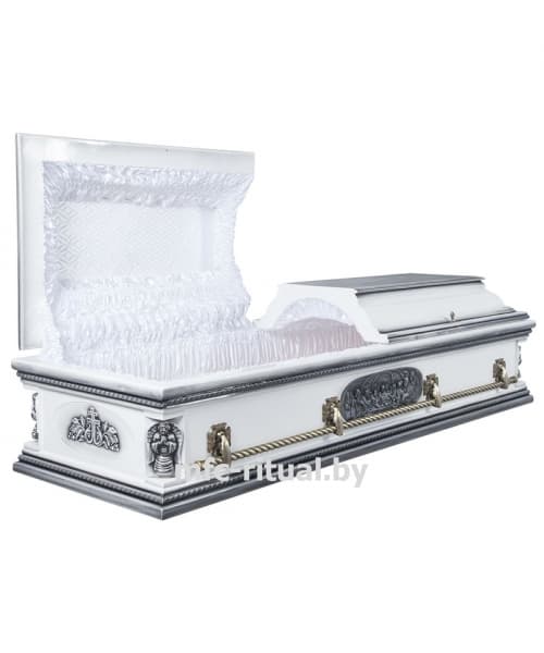 Внешние размеры: длина 213 см, ширина 71 см, высота 60 см.Данная модель гроба рассчитана на покойных, при жизни носивших одежду до 54 размера включительно.