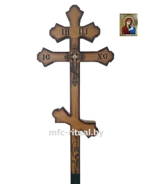 - Надгробный крест из дуба с иконой божьей матери . Толщина бруса 50 мм. Высота 2,2 метра.