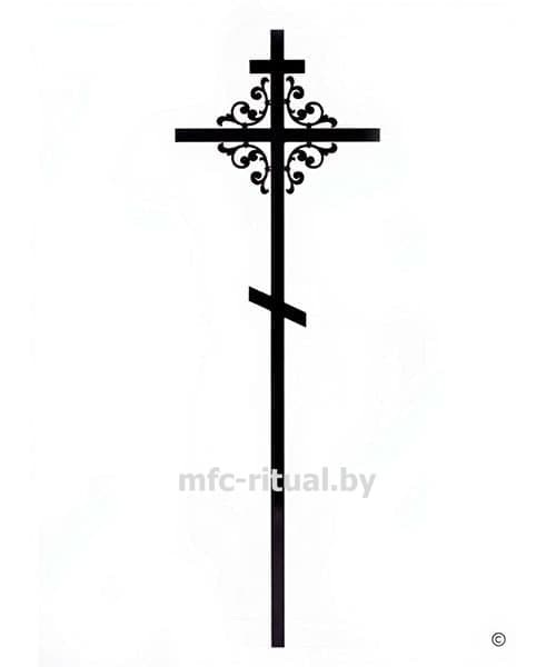 - Фигурный крест №3 «Глория» — ритуальный металлический крест для установки на могиле, покрытый порошковой краской. Крест изготовлен из качественной стали и имеет прочное порошковое полимерное покрытие. Перед окрашиванием его поверхность обрабатывается методом фосфатирования для достижения хорошей адгезии, что обеспечивает долговечность краски. Это значительно повышает коррозионную устойчивость и продлевает срок службы изделия. Особенность конструкции заключается в том, что он обварен со всех сторон, что предотвращает проникновение влаги. Примечание: крест прекрасно сочетается с оградой «Глория».